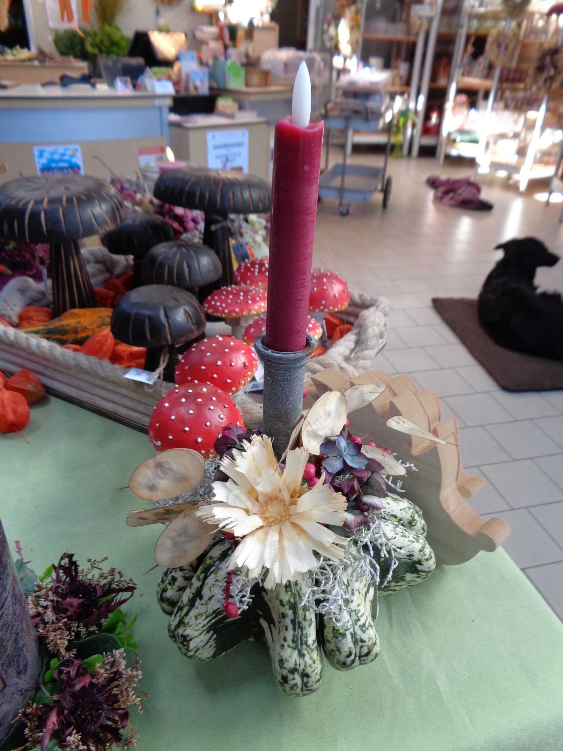 Schnittblumen und Pflanzen in den warmen Herbsttönen, Zierkürbis, herbstliche Kränze und vieles mehr